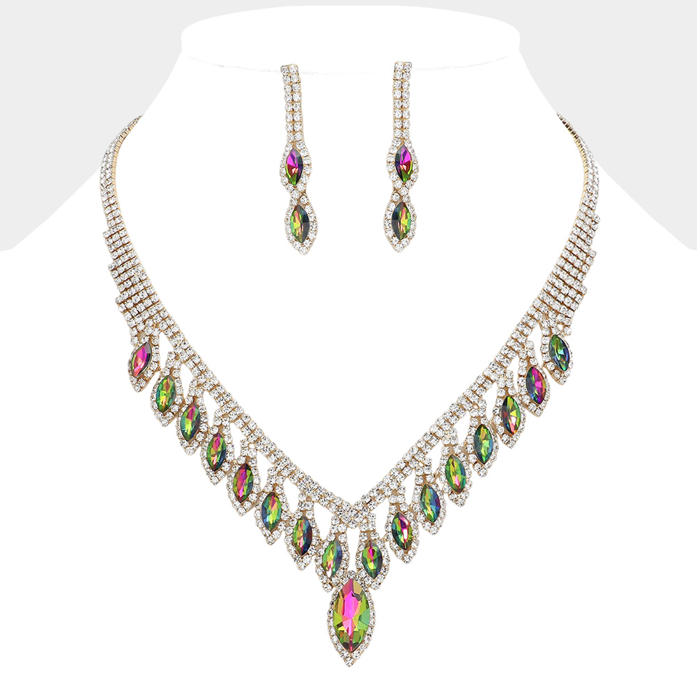 Marquise Stone Fringe Rhinestone Paved Necklace