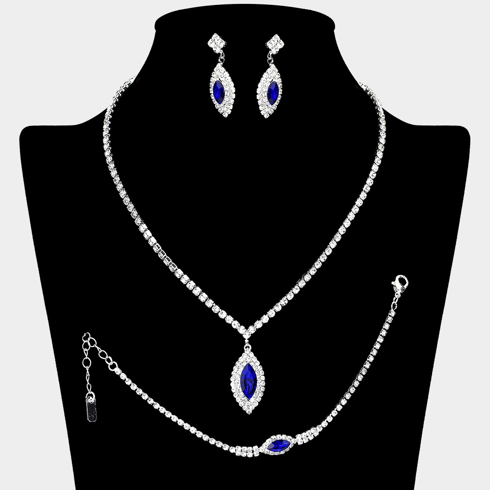 Marquise Stone Pendant Accented Rhinestone Paved Jewelry Set