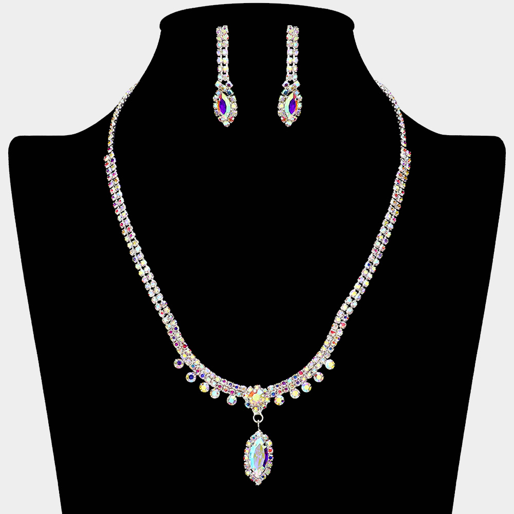 Marquise Stone Pendant Rhinestone Paved Necklace