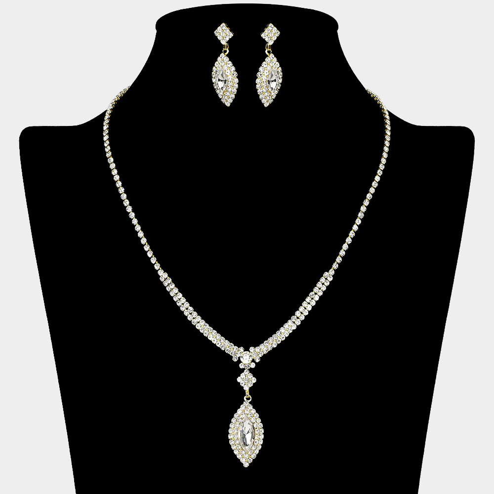 Marquise Stone Pendant Rhinestone Paved Necklace