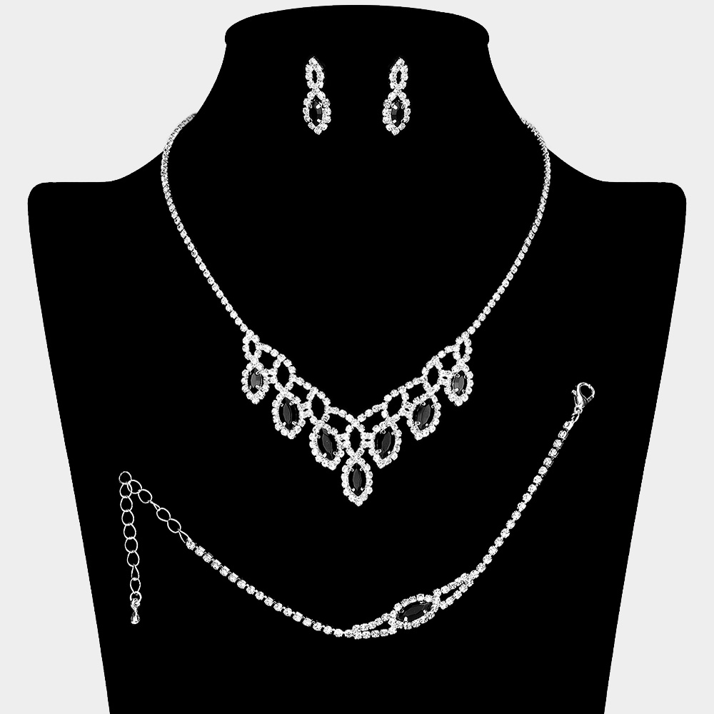 Marquise Stone Pendant Station Rhinestone Paved Jewelry Set