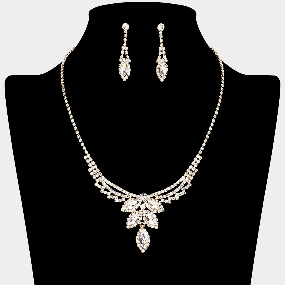 Marquise Stone Embellished Rhinestone Paved Jewelry Set