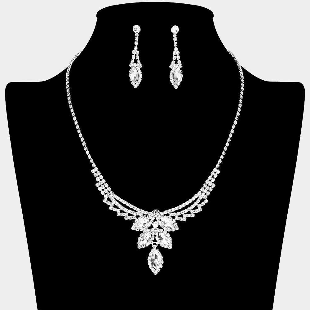 Marquise Stone Pointed Rhinestone Paved Necklace