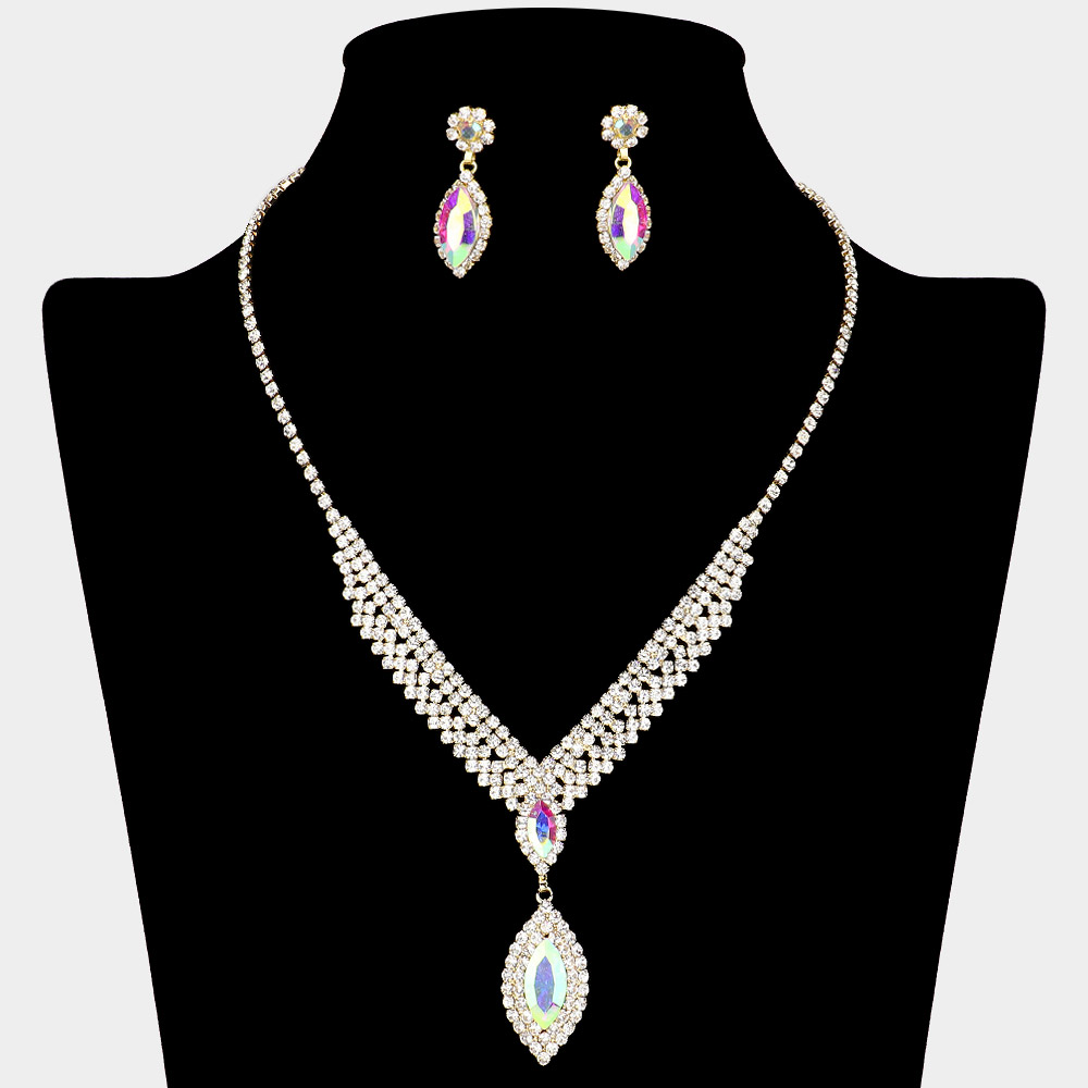 Marquise Stone Pointed Rhinestone Paved V Shaped Necklace
