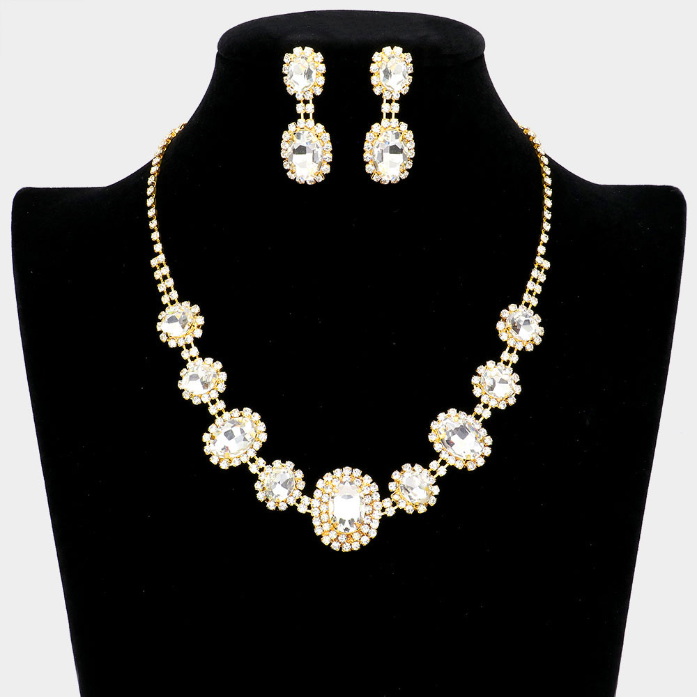 Oval Stone Accented Rhinestone Trimmed Necklace