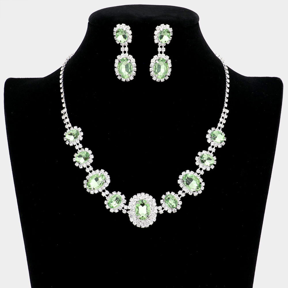 Oval Stone Accented Rhinestone Trimmed Necklace
