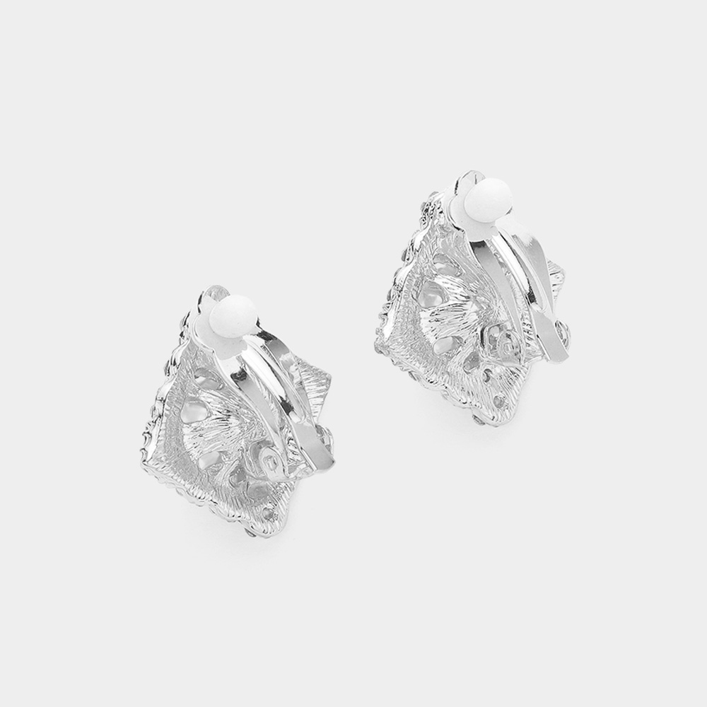 Stainless Steel Rhinestone Paved Quatrefoil Center Hinged Bangle Bracelet