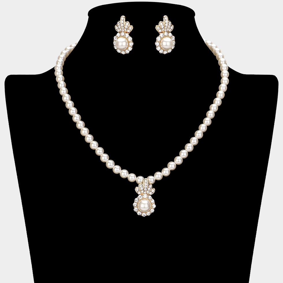 3PCS - 3Rows Pearl Crystal Rhinestone Necklace Jewelry Set