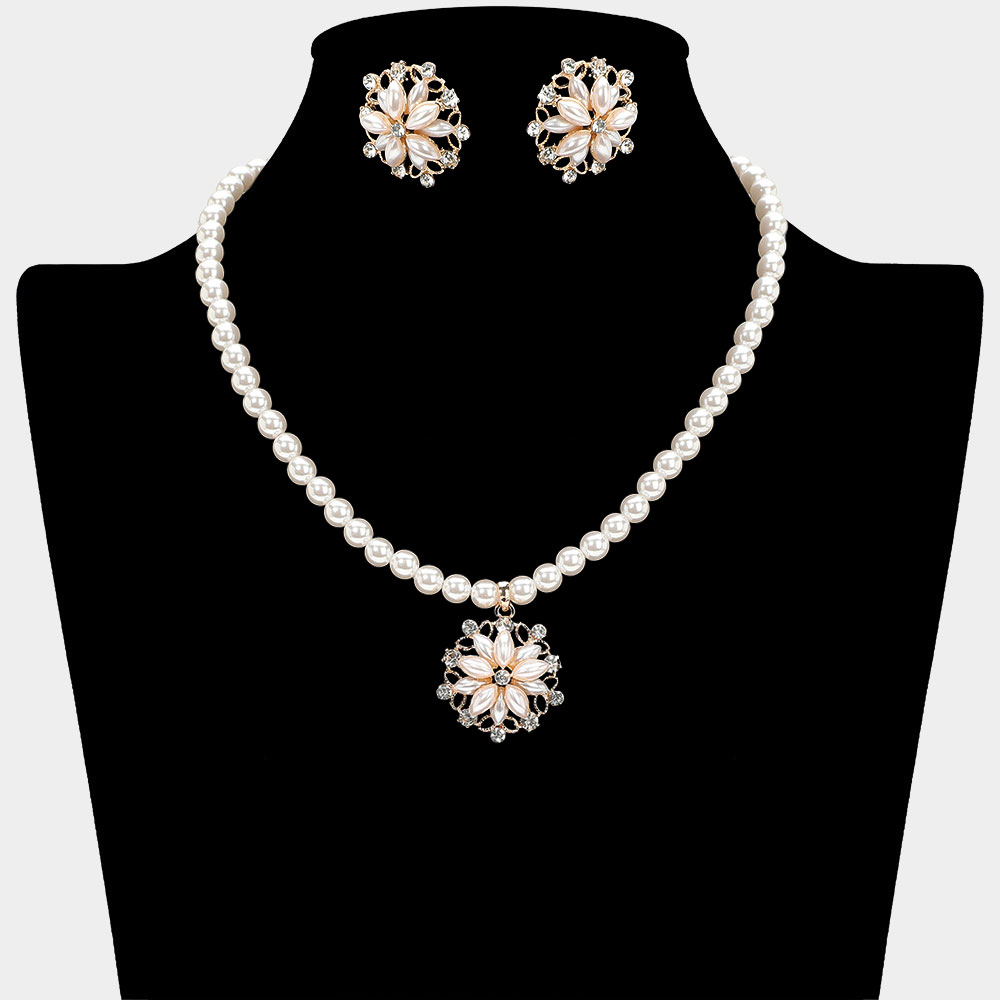 Multi Strand Pearl Crystal Flower Accented Stretch Bracelet