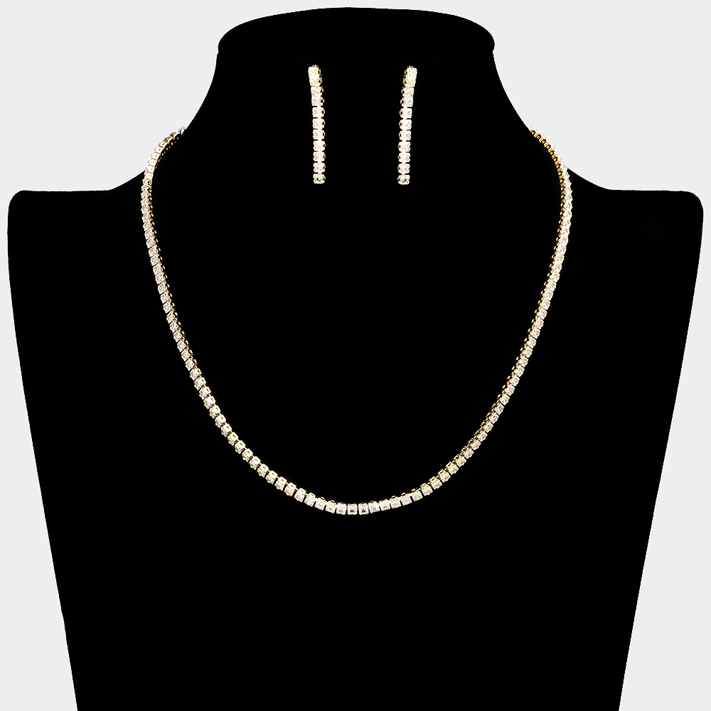 3PCS Marquise Stone Accented Rhinestone Pave Necklace Jewelry Set