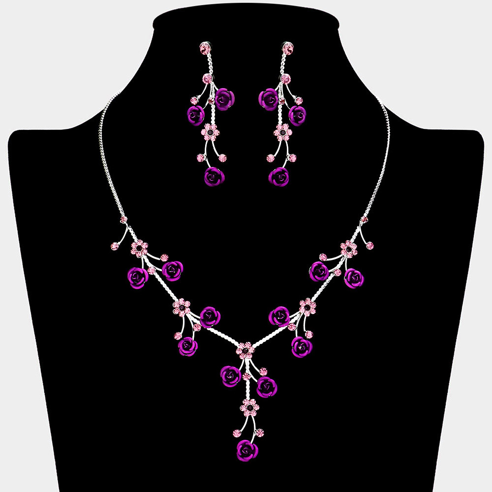 • Elevate your look with this elegant floral necklace and earring set. Featuring delicate flower accents and a graceful design, this jewelry set adds a refined charm to both special occasions and everyday wear, making it a must-have accessory for timeless sophistication.