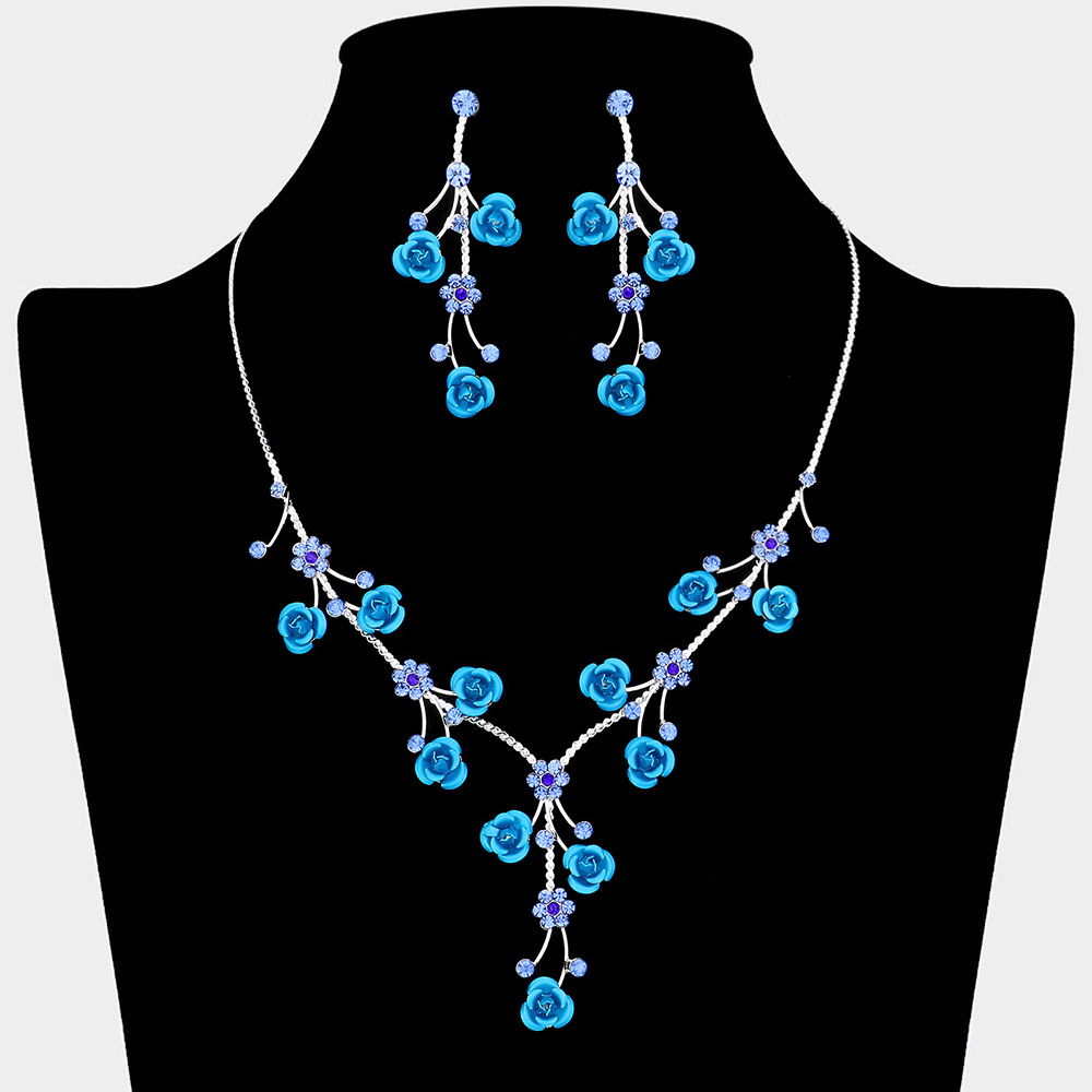 • Elevate your look with this elegant floral necklace and earring set. Featuring delicate flower accents and a graceful design, this jewelry set adds a refined charm to both special occasions and everyday wear, making it a must-have accessory for timeless sophistication.