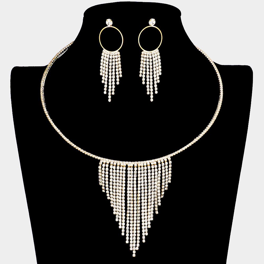 3-PCS Rhinestone fringe necklace jewelry set