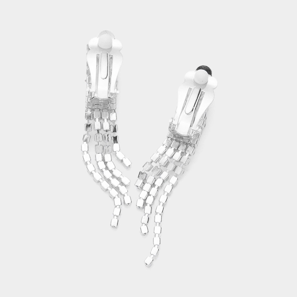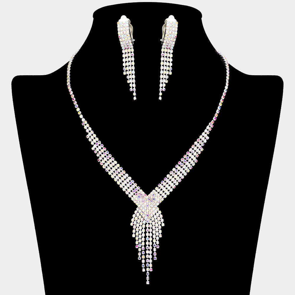 Rhinestone Pave Fringe Necklace & Clip Earring Set