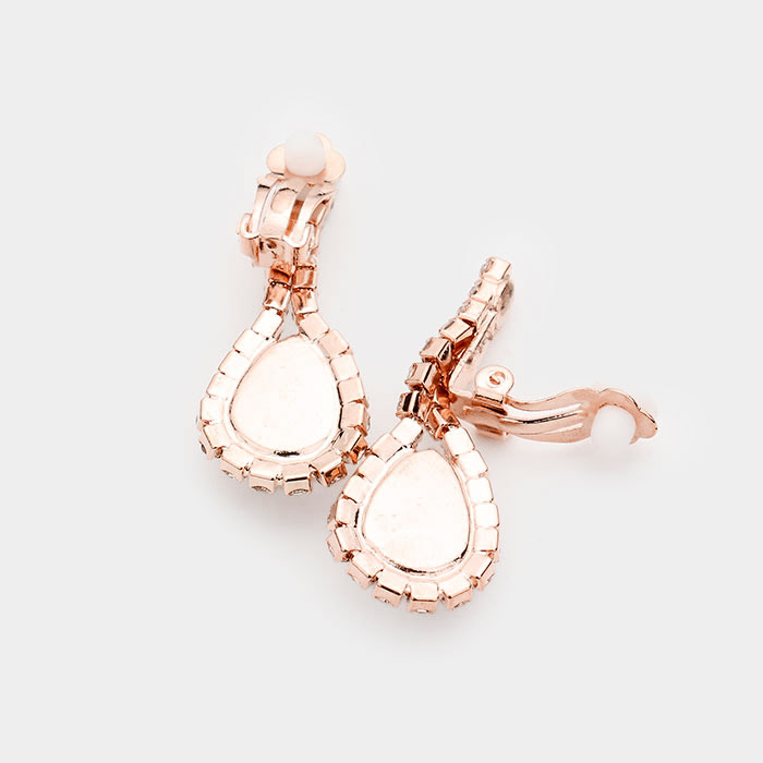 Rhinestone Pave Teardrop Collar Necklace & Clip Earring Set