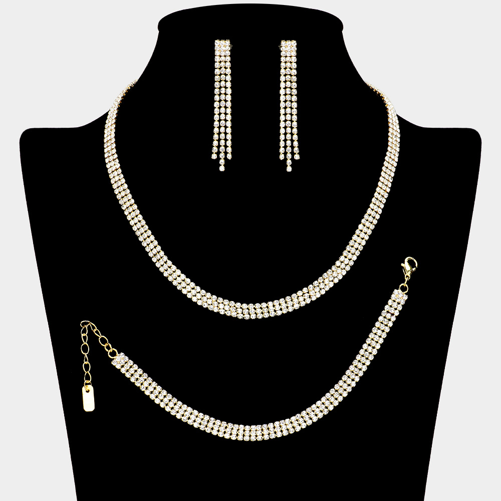 Rhinestone Paved 3-Row Necklace Jewelry Set