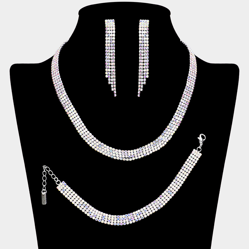Rhinestone Paved 4-Row Necklace Jewelry Set