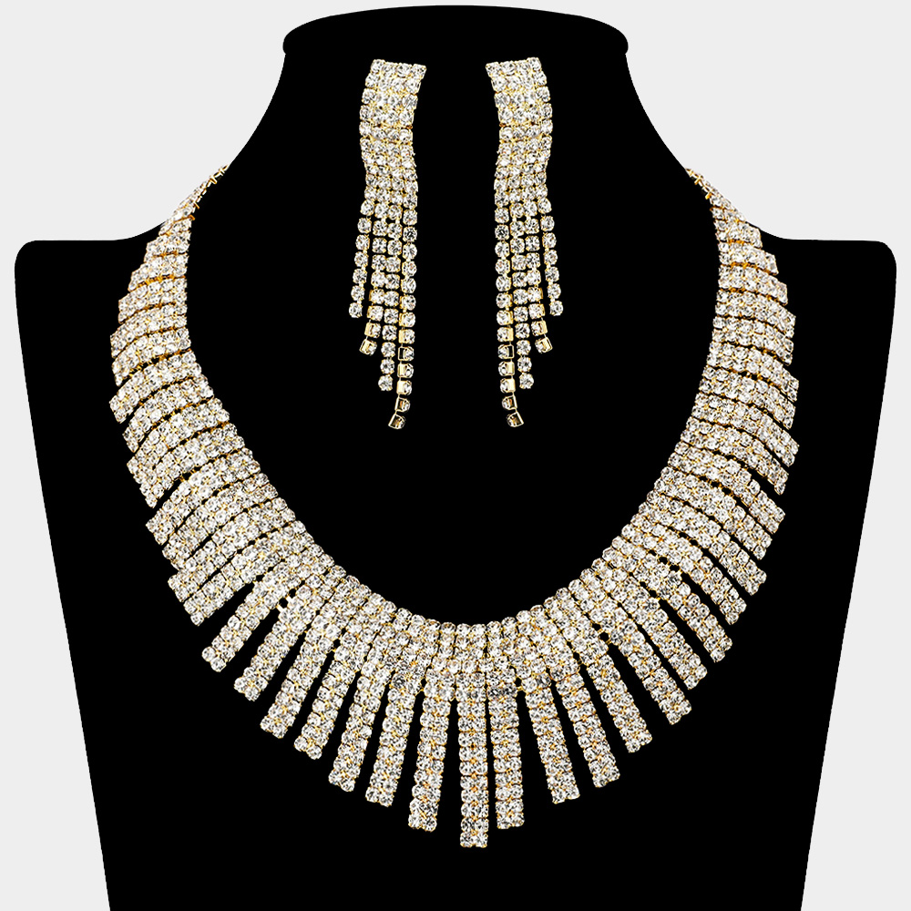 2PCS - Bold Antique Metal Cross Multi Layered Crystal Statement Necklace