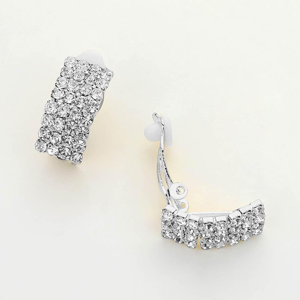 Rhinestone Paved Collar Necklace Clip on Earring Set