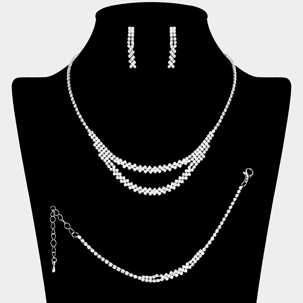 Rhinestone Paved Double Layered Chain Jewelry Set
