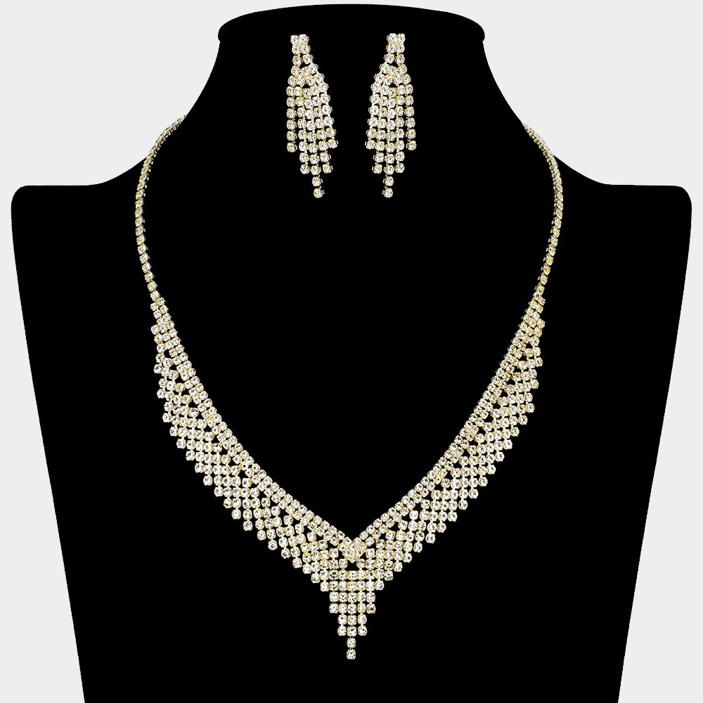 Rhinestone Paved Fringe Tip Collar Necklace