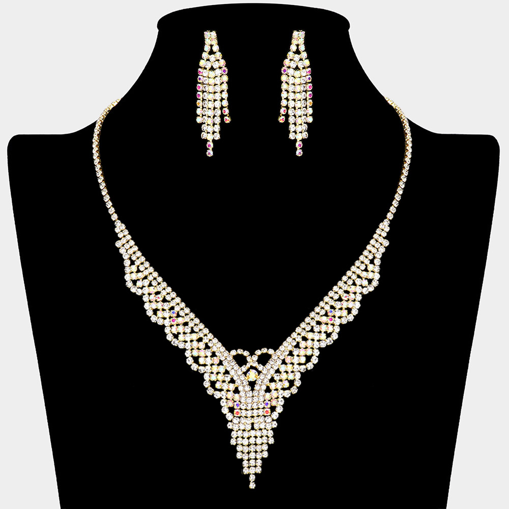 Teardrop Stone Pointed Rhinestone Paved Necklace