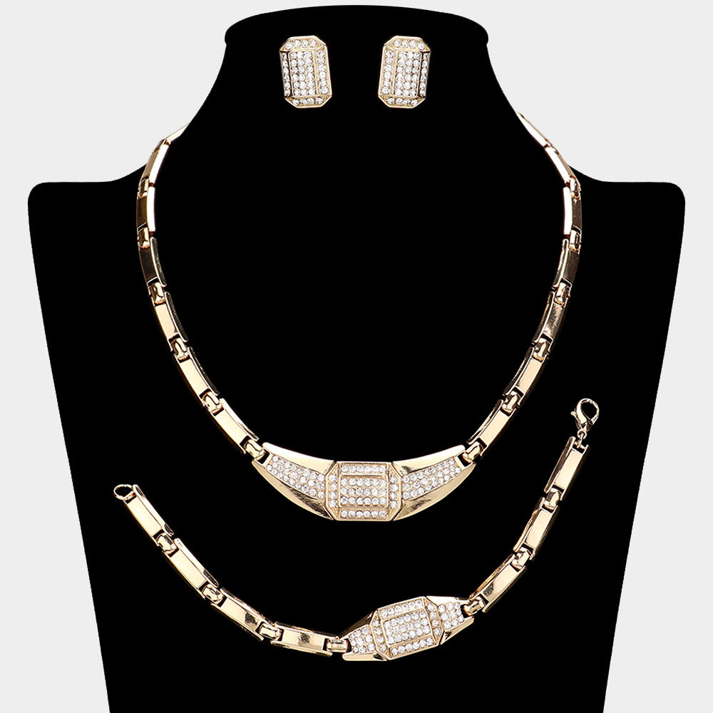 Rhinestone Paved Geometric Necklace Jewelry Set