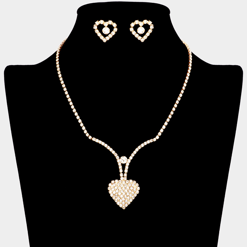 Rhinestone Paved 4-Row Necklace Jewelry Set