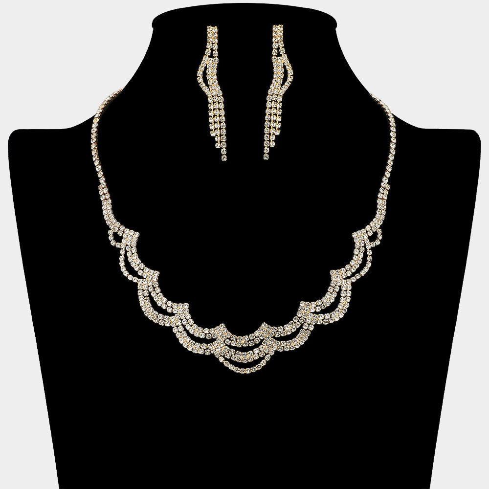 • Shine with sophistication in this iridescent layered rhinestone necklace and earring set. Designed with cascading crystal strands that reflect light beautifully, this statement jewelry set is perfect for galas, weddings, and formal occasions where you want to sparkle with elegance.