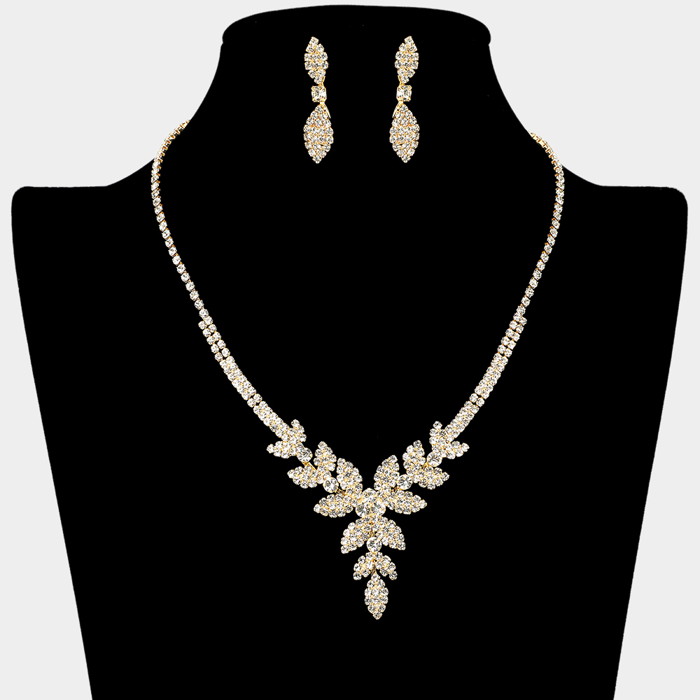 CZ Teardrop Marquise Stone Cluster Leaf Vine Y Shaped Necklace