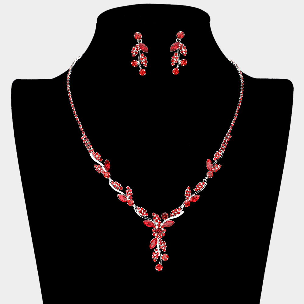 • This graceful necklace and earring set features a cascading leaf design with radiant accents for a refined, shimmering look. Perfect for weddings, proms, and special occasions where you want to shine.