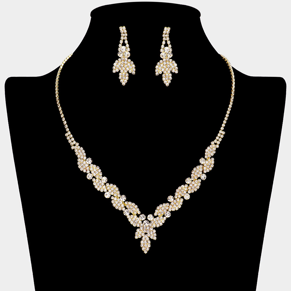 Teardrop Marquise Round Stone Embellished V Shaped Evening Necklace