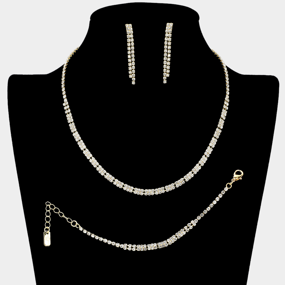 Rhinestone Paved Rectangle Link Jewelry Set
