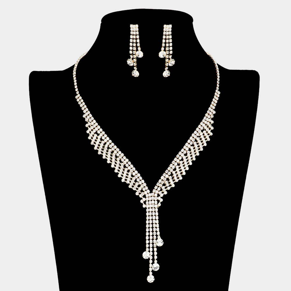 Rhinestone Paved Tassel Pointed V Shaped Necklace