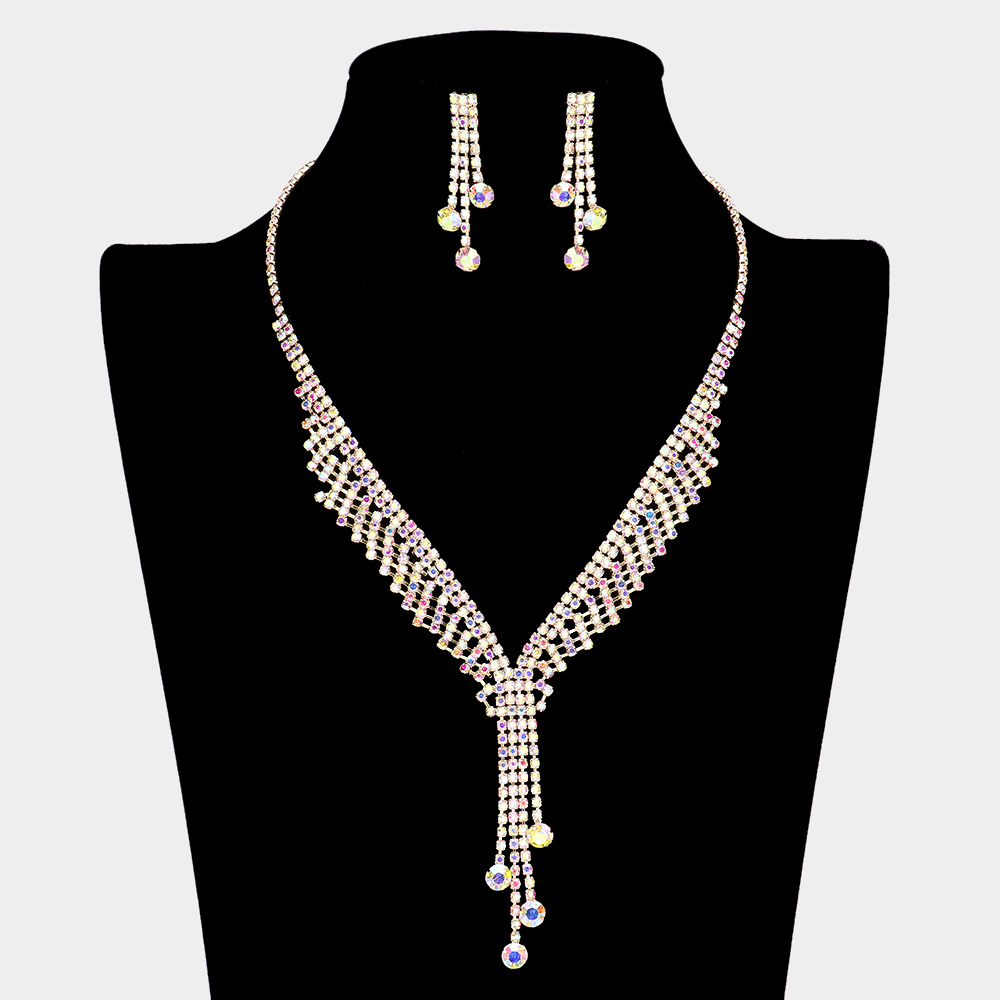 Rhinestone Paved Tassel Pointed V Shaped Necklace