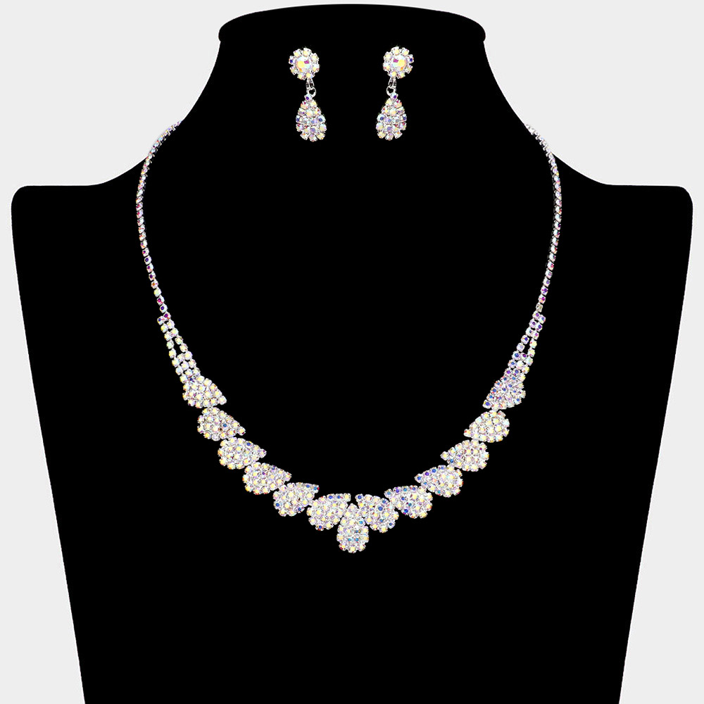 Round Teardrop Stone V Shaped Rhinestone Necklace