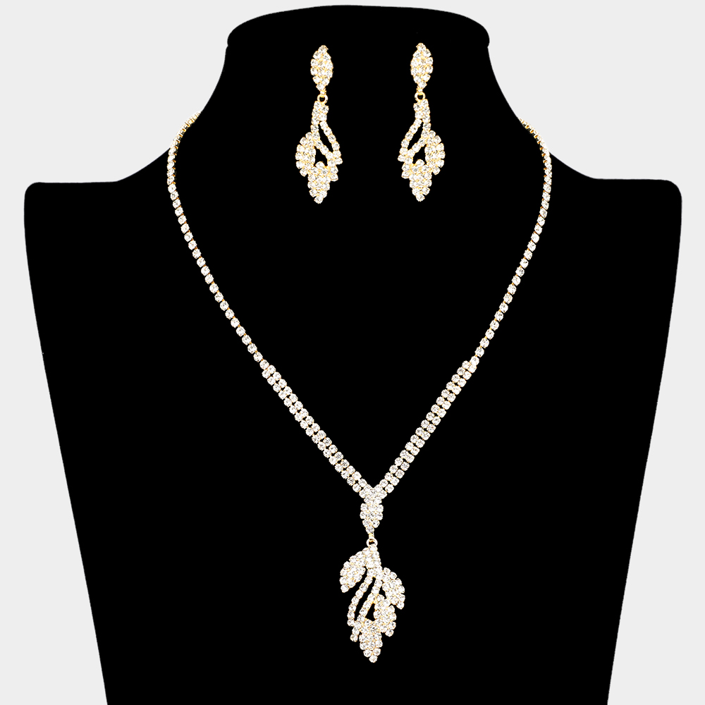Rhinestone Paved V Shaped Necklace Clip on Earring Set