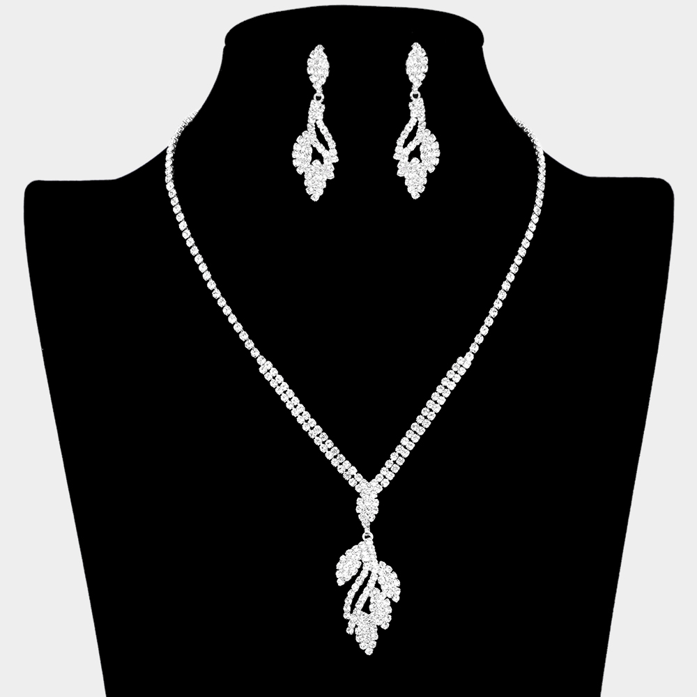 Rhinestone Paved Teardrop Shaped Pendant Pointed Necklace