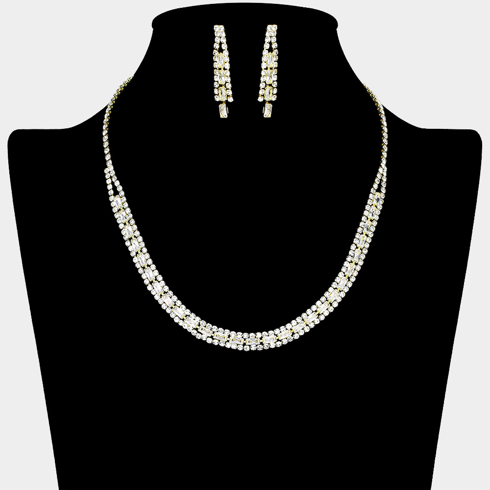 CZ Embellished Square Brass Metal Rectangle Pendant Double Layered Necklace