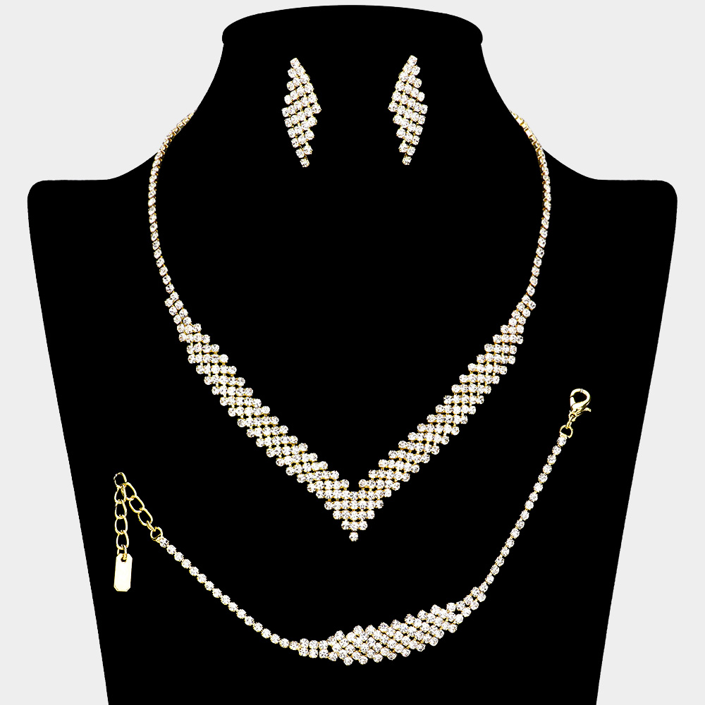 Teardrop Stone Accented Rhinestone Paved Necklace