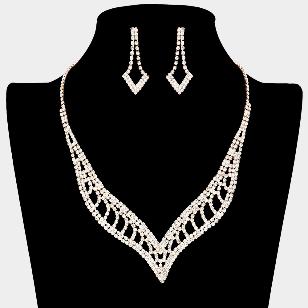 Geometric Rhinestone Paved Plate Pointed Chunky Necklace Jewelry Set