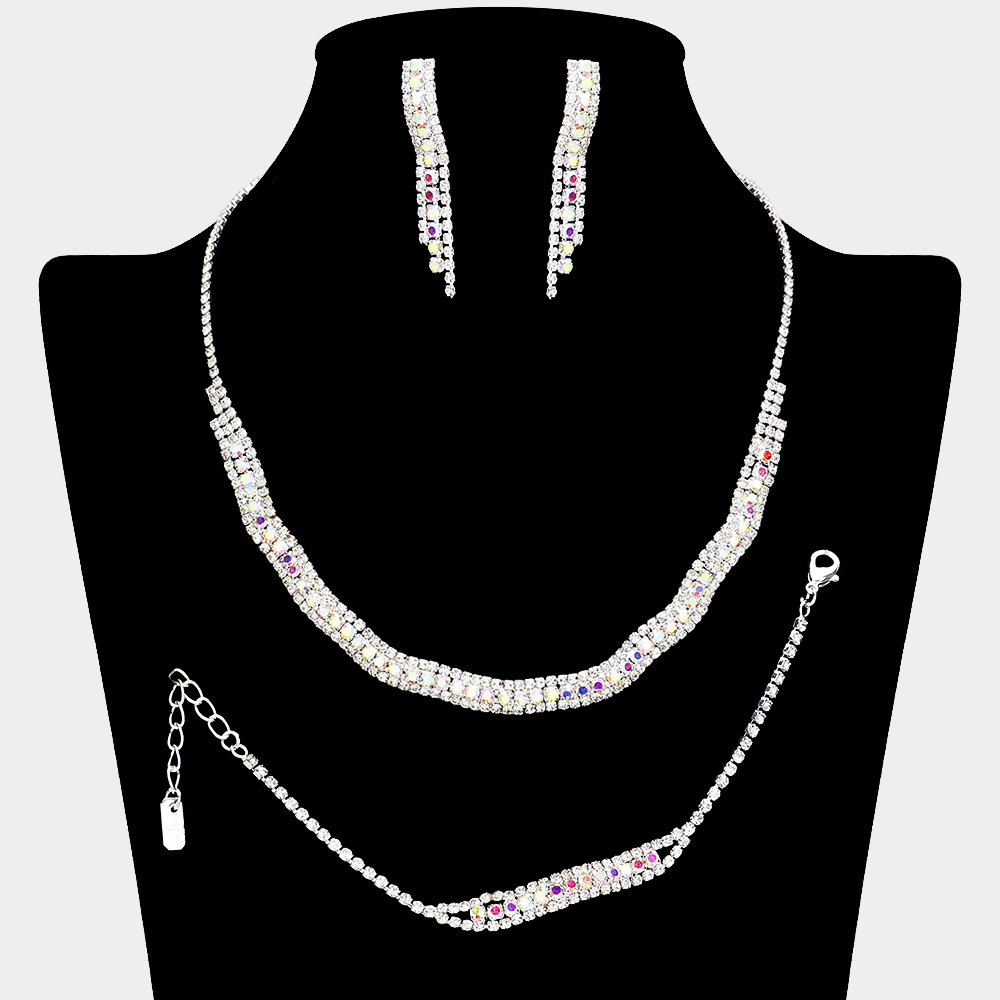 Rhinestone Paved Wavy Necklace Jewelry Set