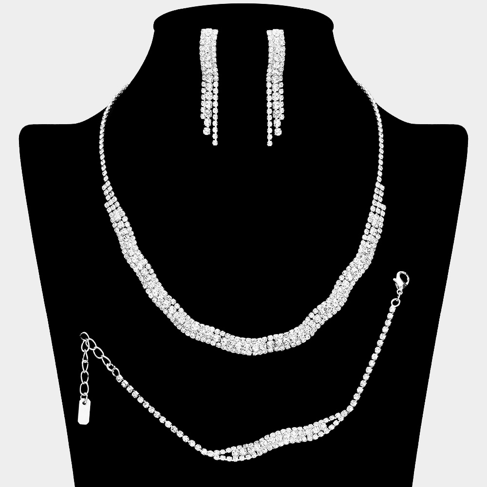 Rhinestone Paved Wavy Necklace Jewelry Set