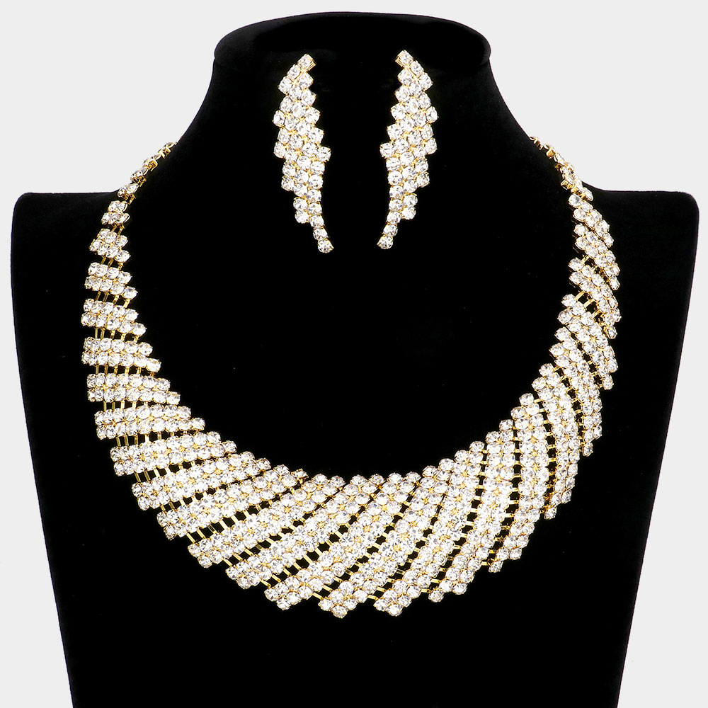 Teardrop Glass Stone Cluster Embellished Evening Necklace