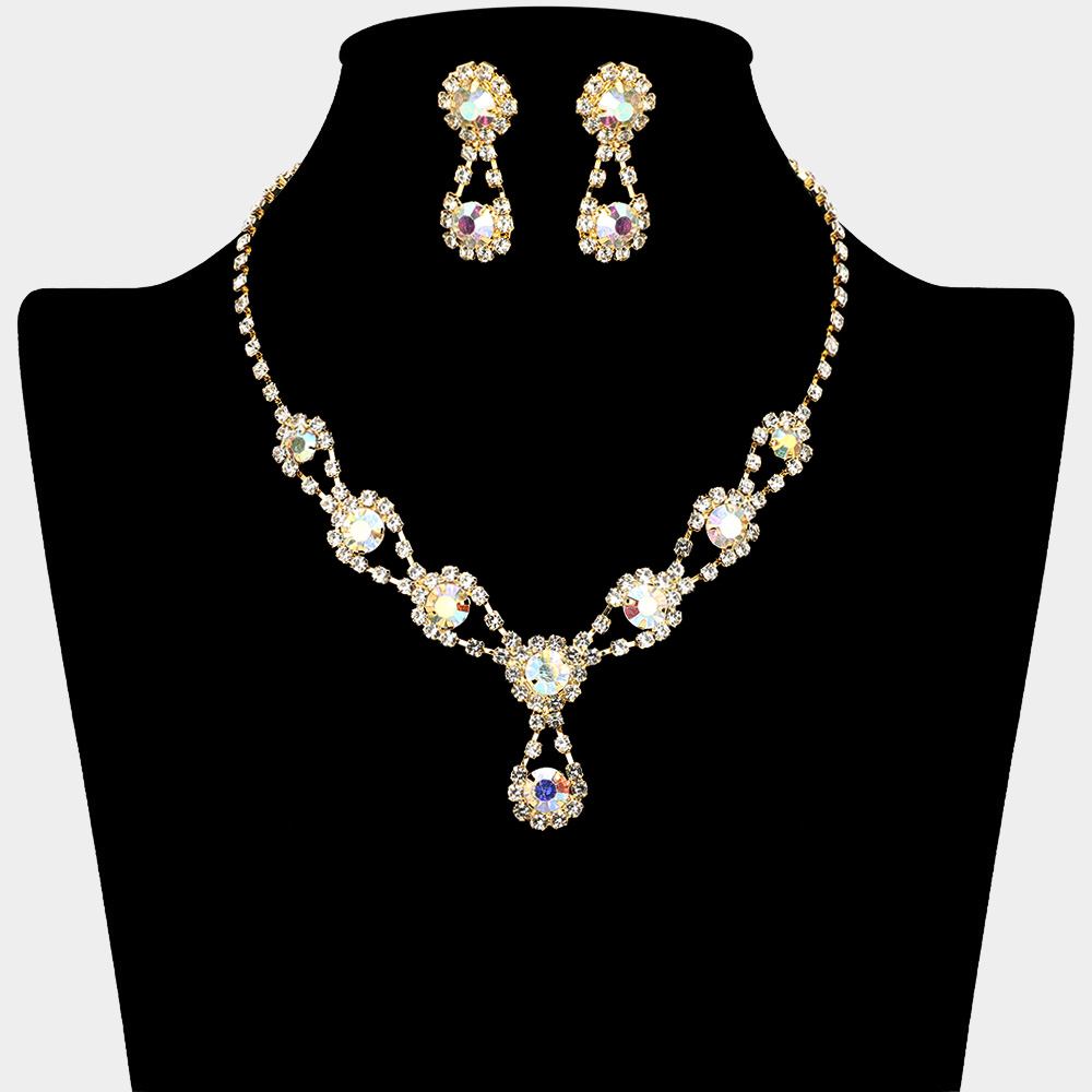 Round Crystal Vine Rhinestone Bib Drop Necklace