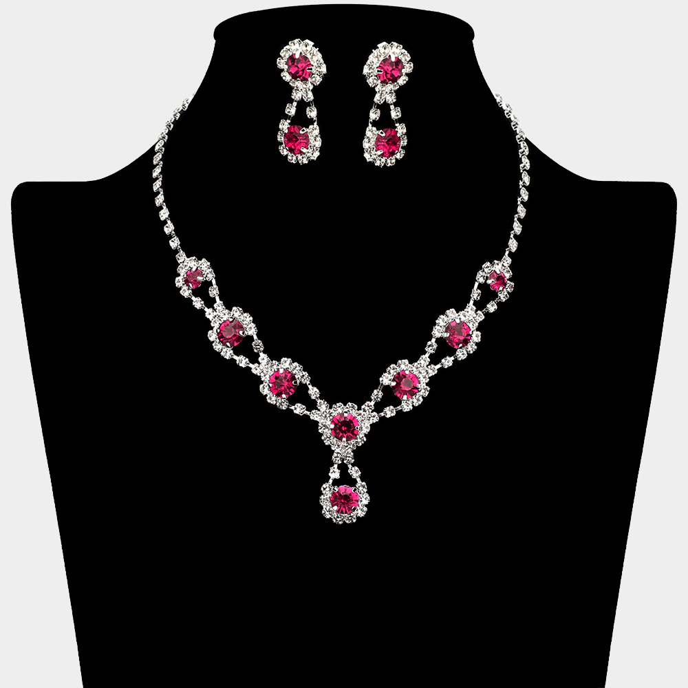 Round Crystal Vine Rhinestone Bib Drop Necklace