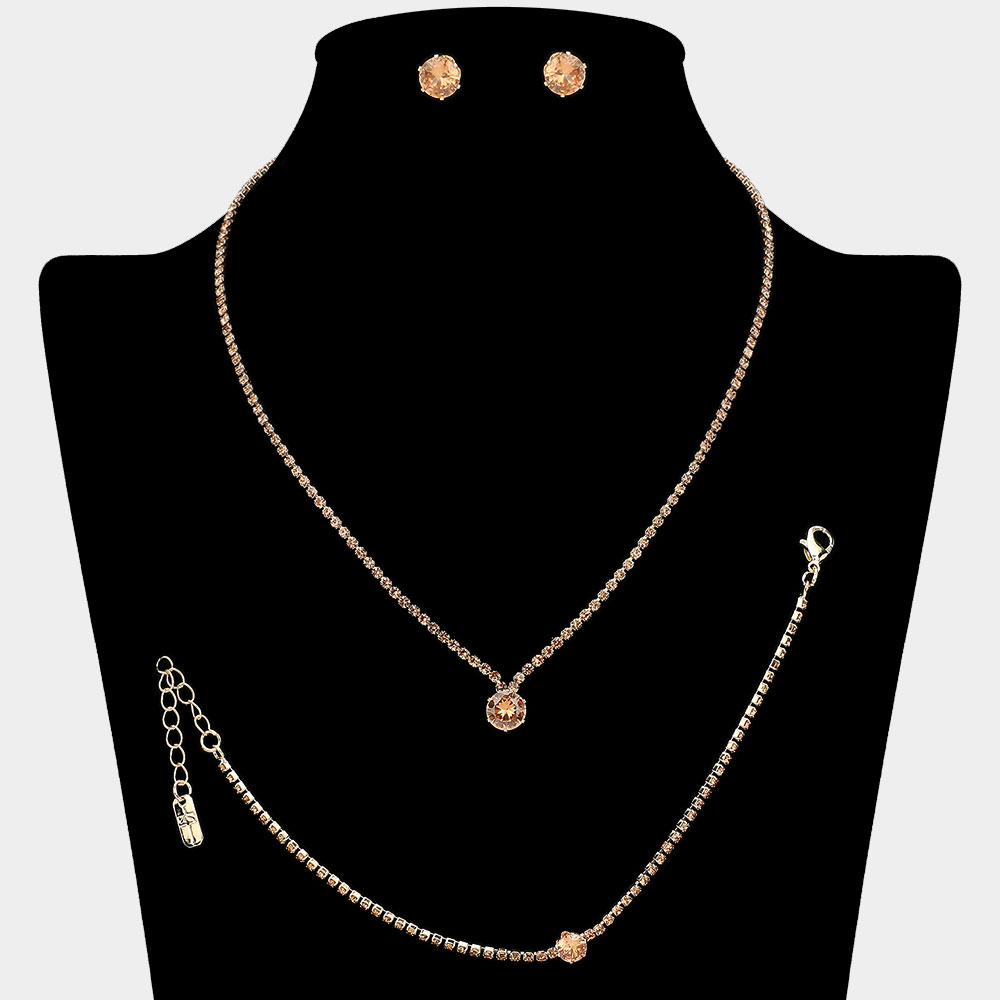 • Complete your look with this minimalist crystal jewelry set featuring a delicate necklace, matching bracelet, and stud earrings. Perfect for everyday elegance or formal occasions, this set adds a subtle sparkle and refined touch to any outfit. Adjustable for a comfortable fit.