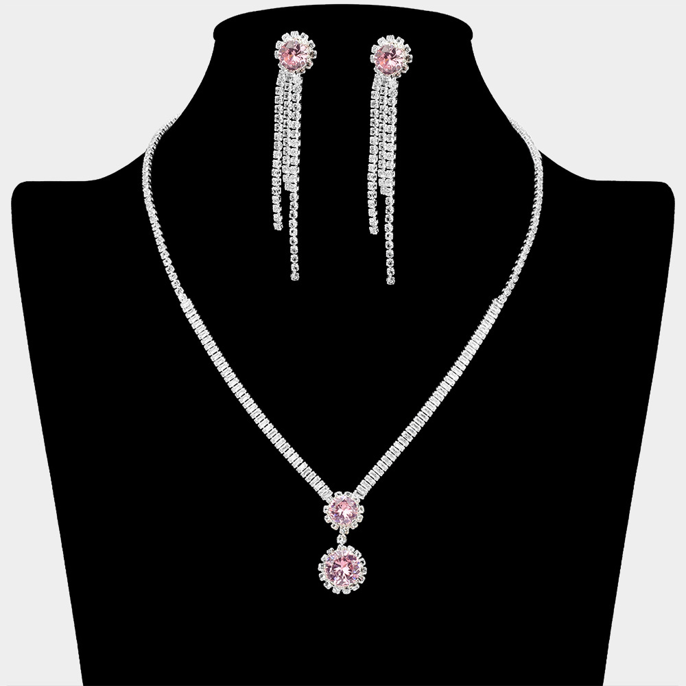 Round CZ Stone Cluster Pointed Rhinestone Paved Necklace