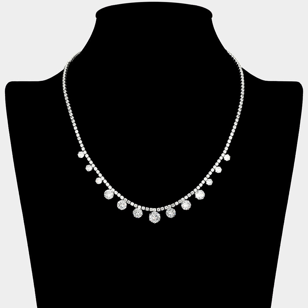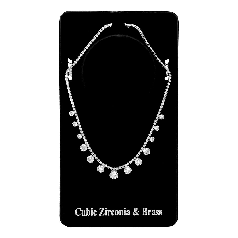Details • Necklace Size : 16" + 2" L • Decor Size : 0.4" L • Dazzling rhinestone necklace featuring a delicate chain with shimmering drop accents. Perfect for evening wear, weddings, or special occasions, this timeless piece adds radiant sparkle and sophistication to any outfit. • Brass • CZ Cubic Zirconia