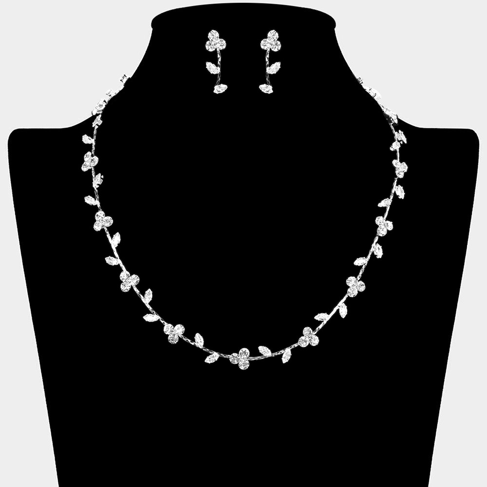 Round Marquise CZ Stone Cluster Flower Vine Necklace